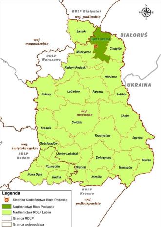 Nadleśnictwo Biała Podlaska, będące jednym z 25 nadleśnictw Regionalnej Dyrekcji Lasów Państwowych w Lublinie, zarządza 13164,18 ha gruntów Skarbu Państwa i podzielone jest na dwa obręby leśne: Biała Podlaska i Kijowiec.